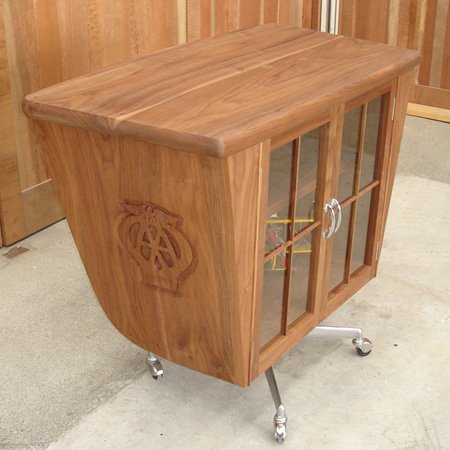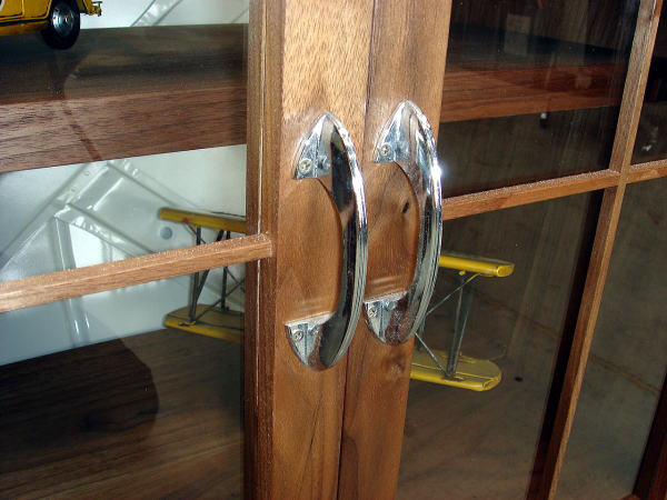 クラシカルな取っ手です。天板とボンネットフードの間はアクリルを曲げて入れています。
